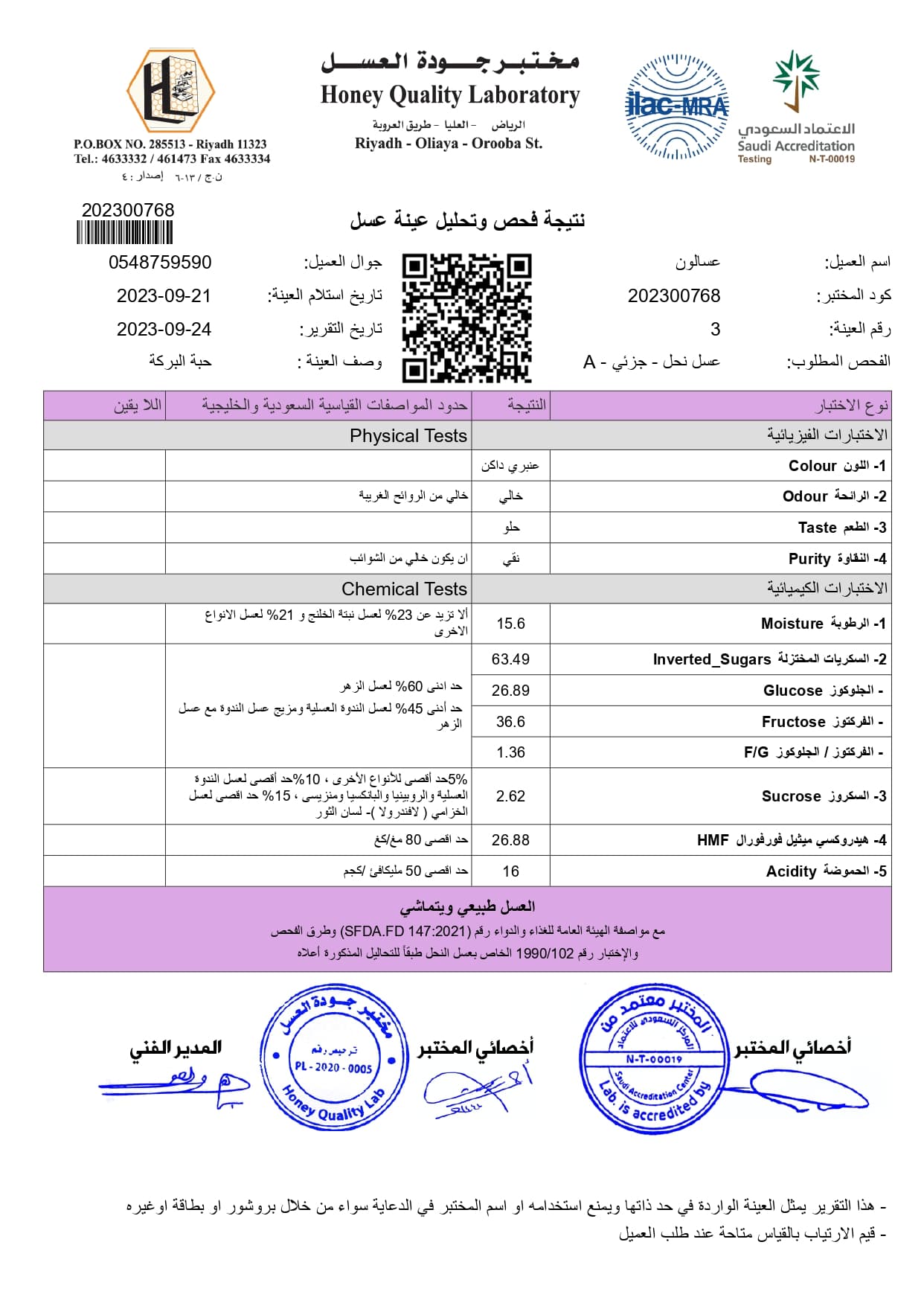 فحص الجودة لعسل حبة البركة